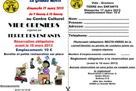 Groupe TDE Le Ponant Le Vide Greniers organisé par « Terre des Enfants » aura lieu au Centre Culturel de la Grande Motte le dimanche 17 mars…