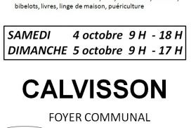 Groupe TDE de Calvisson La braderie de Calvisson aura lieu le 4 et le 5 octobre au foyer communal vêtements adultes et enfants, sacq, chaussures,…