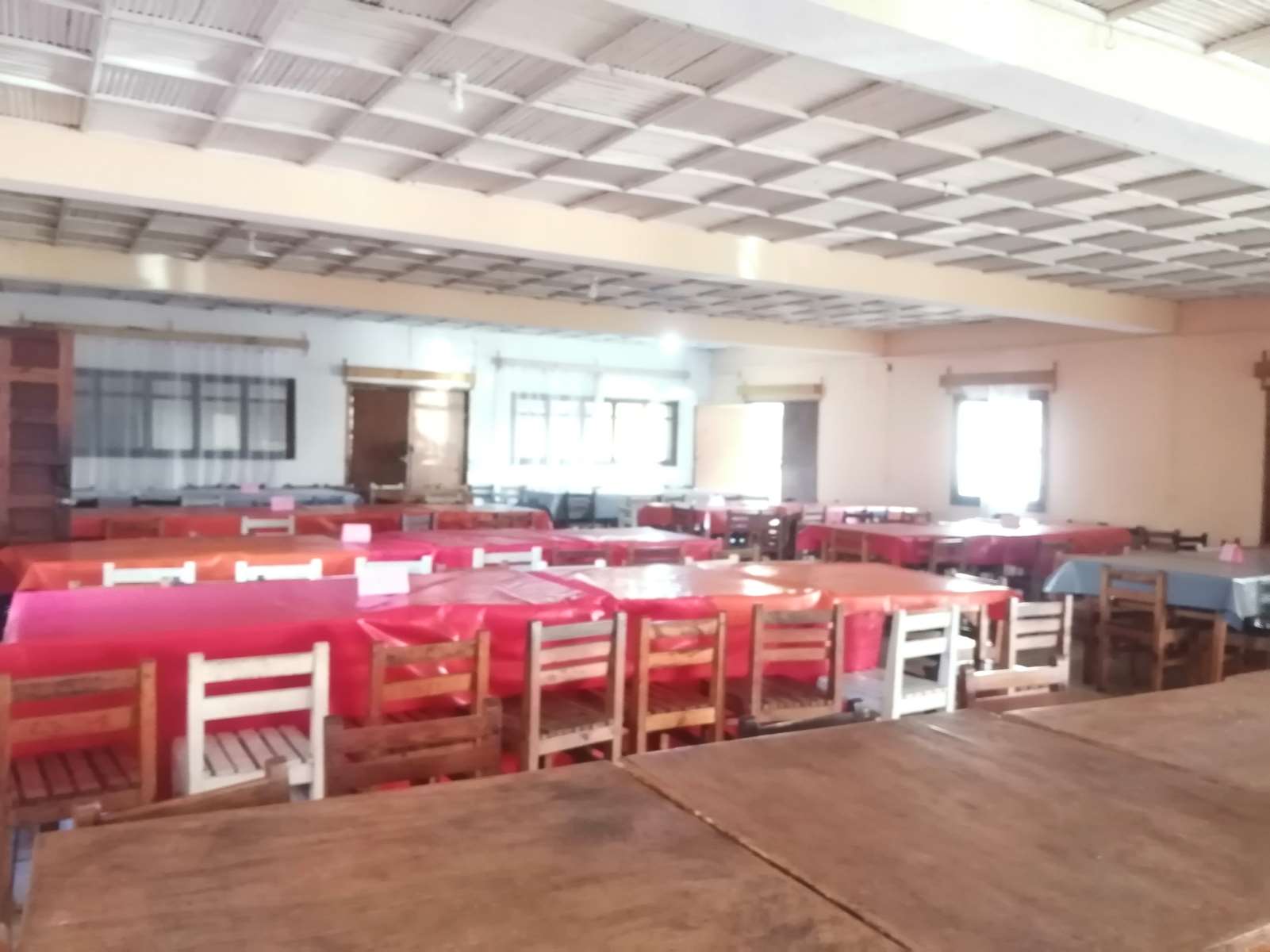 • où ils mangeaient dans un réfectoire avec des chaises individuelles