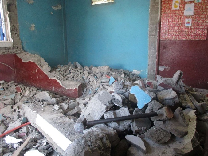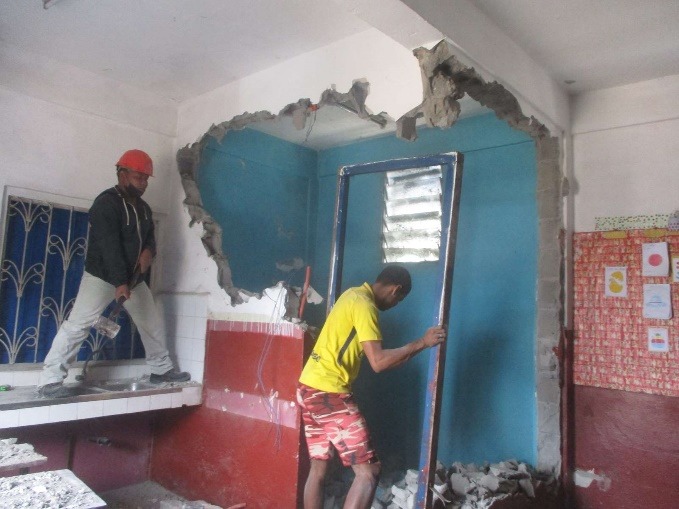 Démolition d’un mur pour agrandir la classe de C.P.