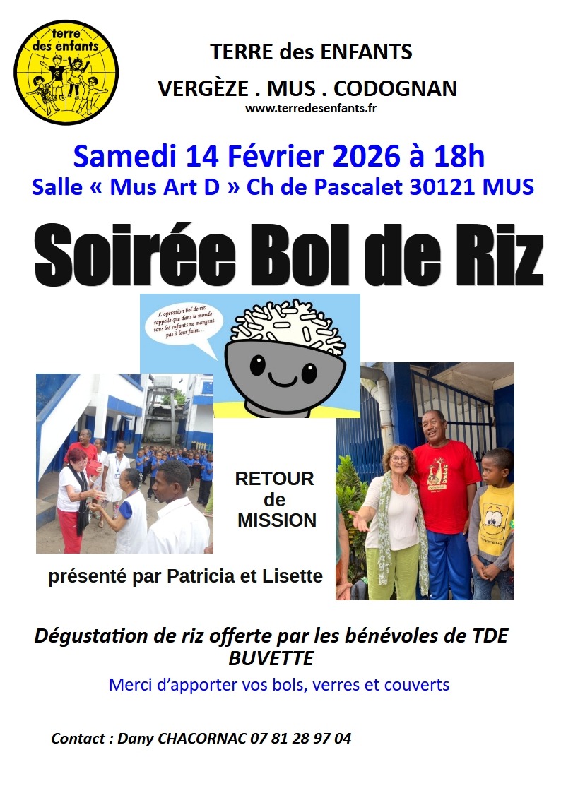 Les bénévoles du groupe offrirons le bol de riz et ses sauces en accompagnement. Alors n’oubliez pas vos bols, couverts et verres.