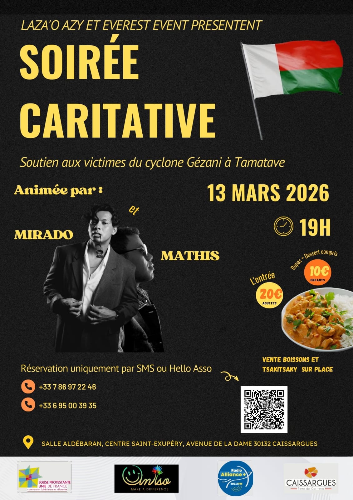 Soirée caritative: en faveur des victimes du cyclone Gezani