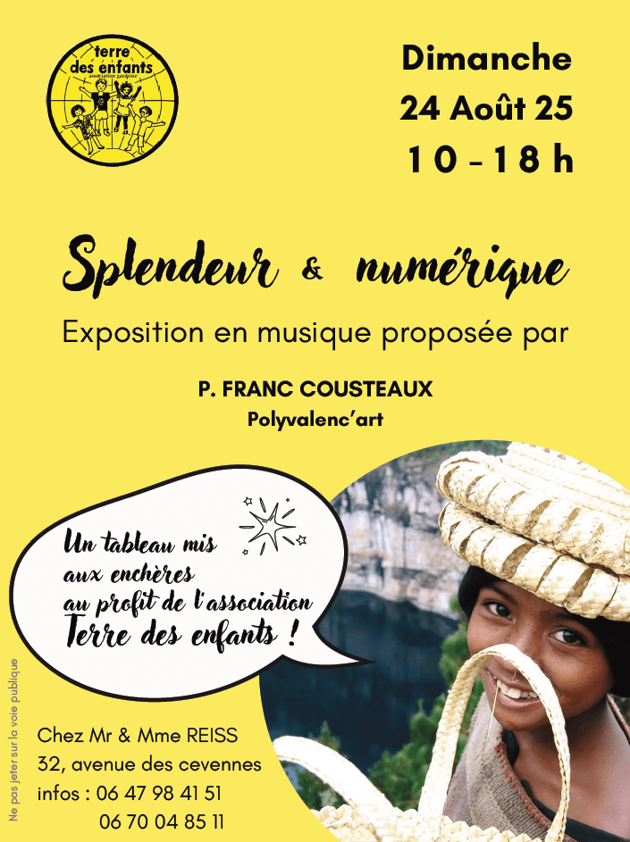 ![]() Dimanche 24 Aout - 10H à 19h : expo de F.Cousteaux dans mon jardin ( Hélène REISS) |