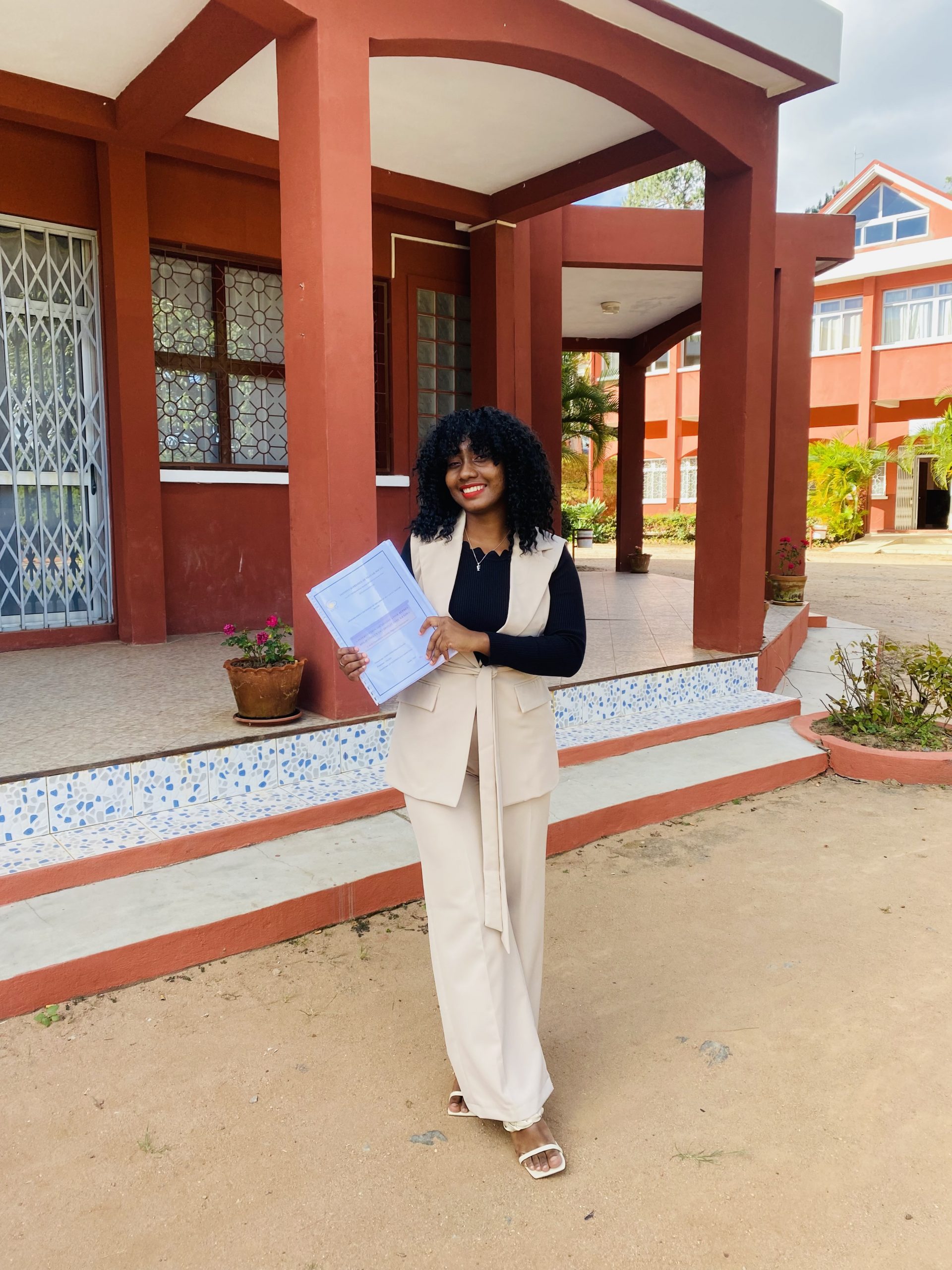 C’est un parcours sans faute !!! Jeune fille âgée de 24 ans cette année, elle vient de réussir sa soutenance en Master 2 avec mention TB et 16/20.