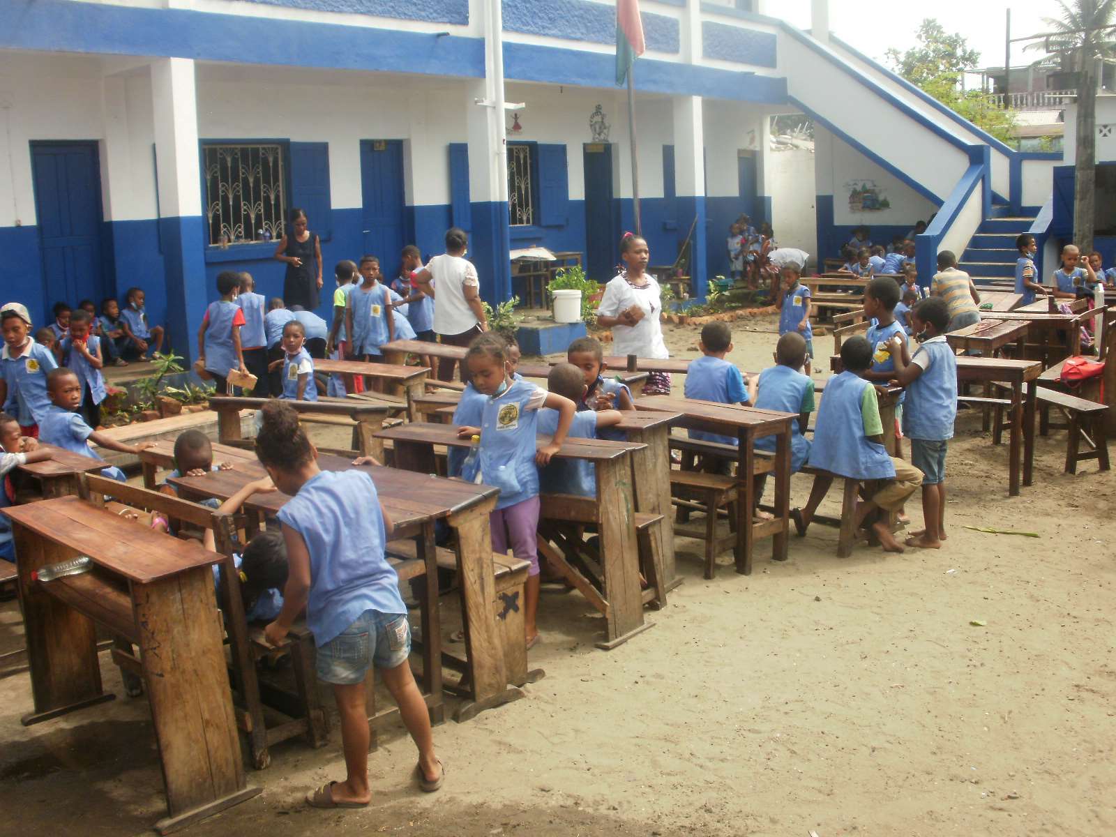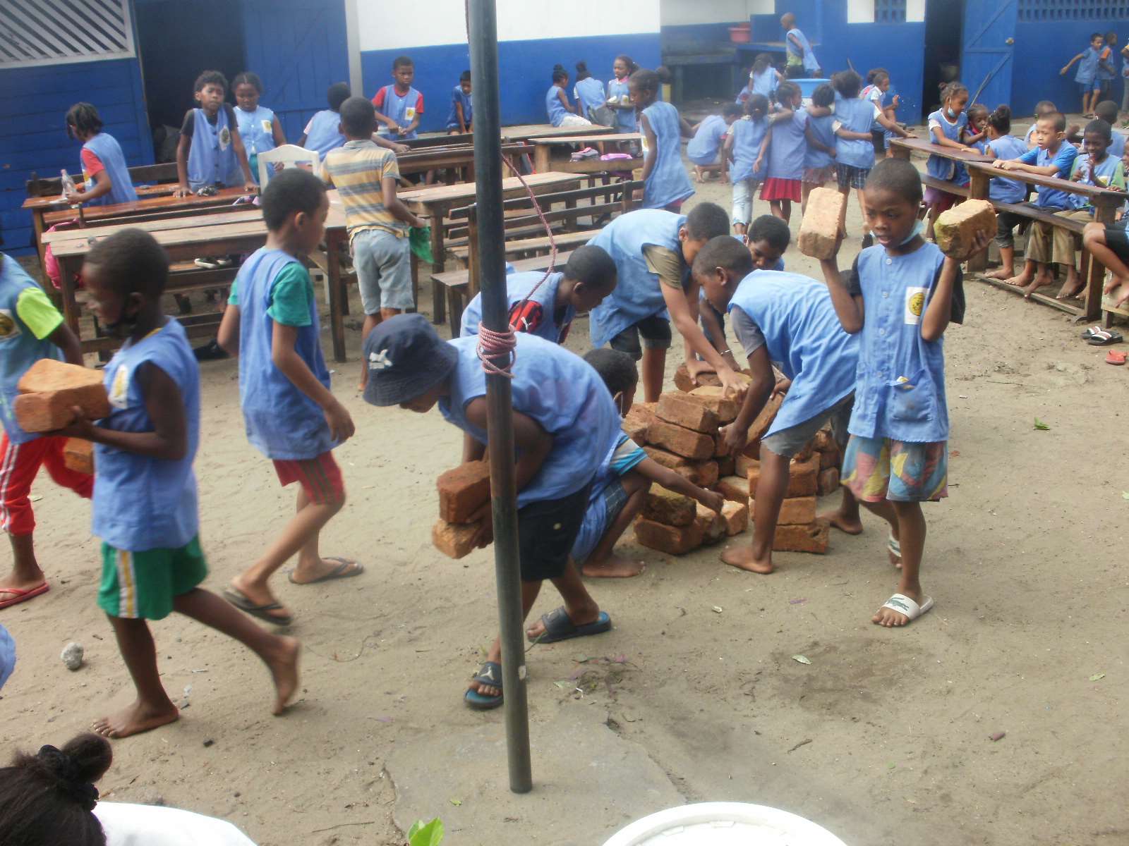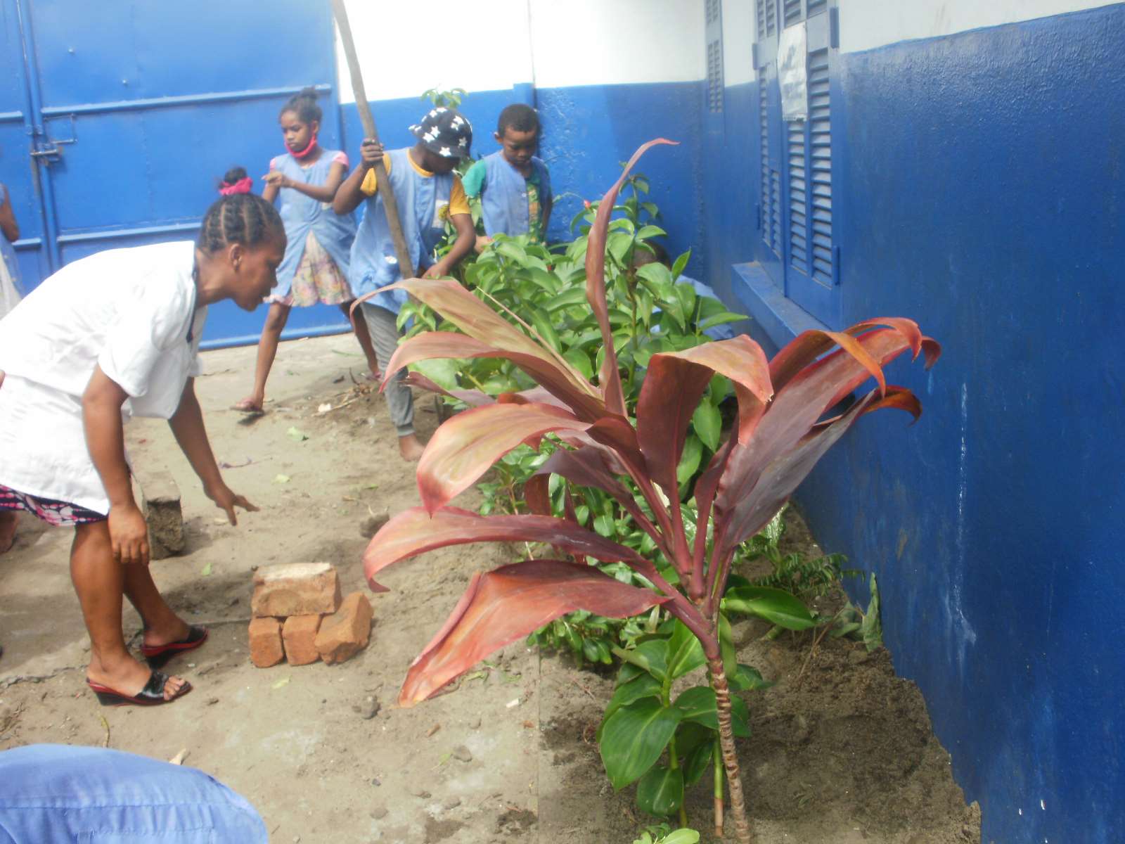 Après ces 3 cyclones tout le monde souffle un peu: à l’Ecole Antoine, on entreprend de nettoyer à fond l’école et on refait les plantations.