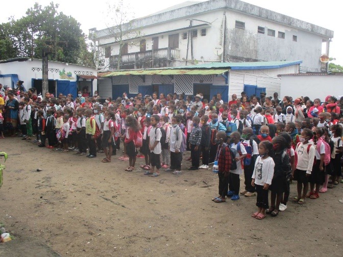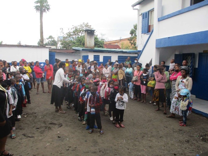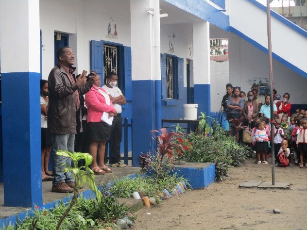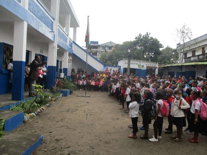 M. Rolland, représentant de TDE pour Tamatave, puis la directrice, Mme Clarisse, souhaitent la bienvenue aux enfants.