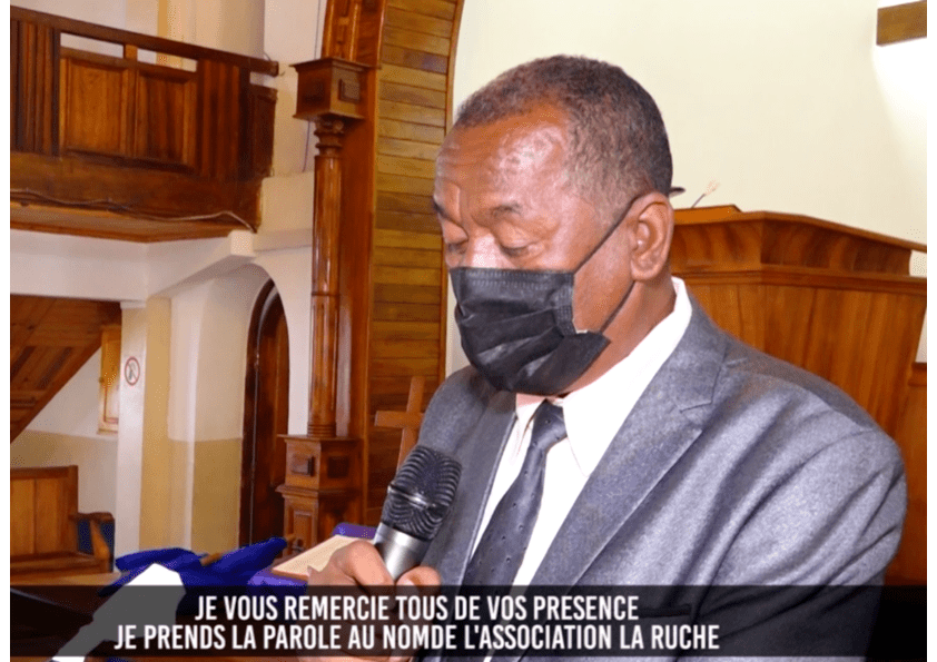 Le président de « l’Association La Ruche », M. Rolland prend la parole. Il est également le représentant par intérim de Terre des Enfants à Madagascar