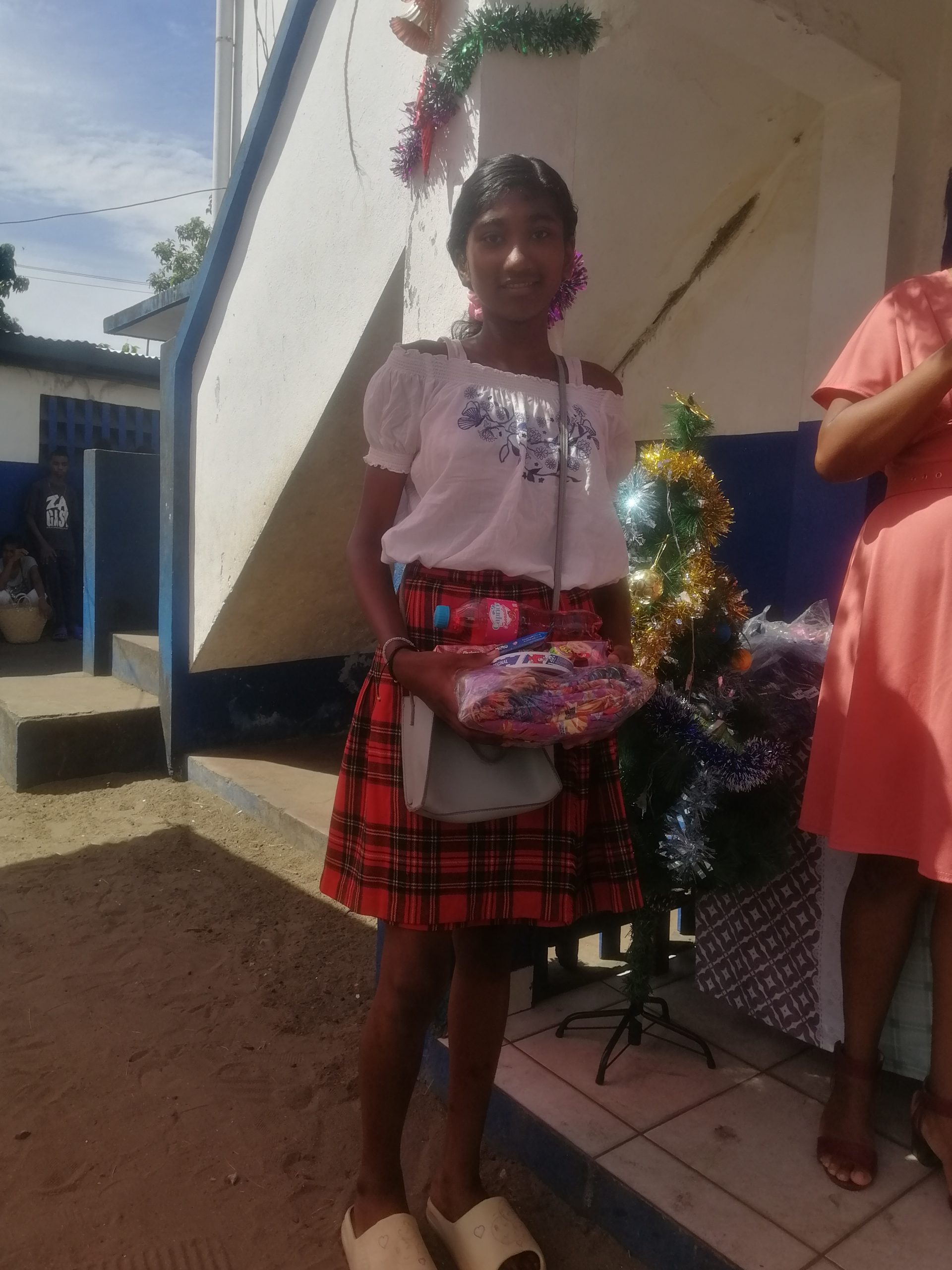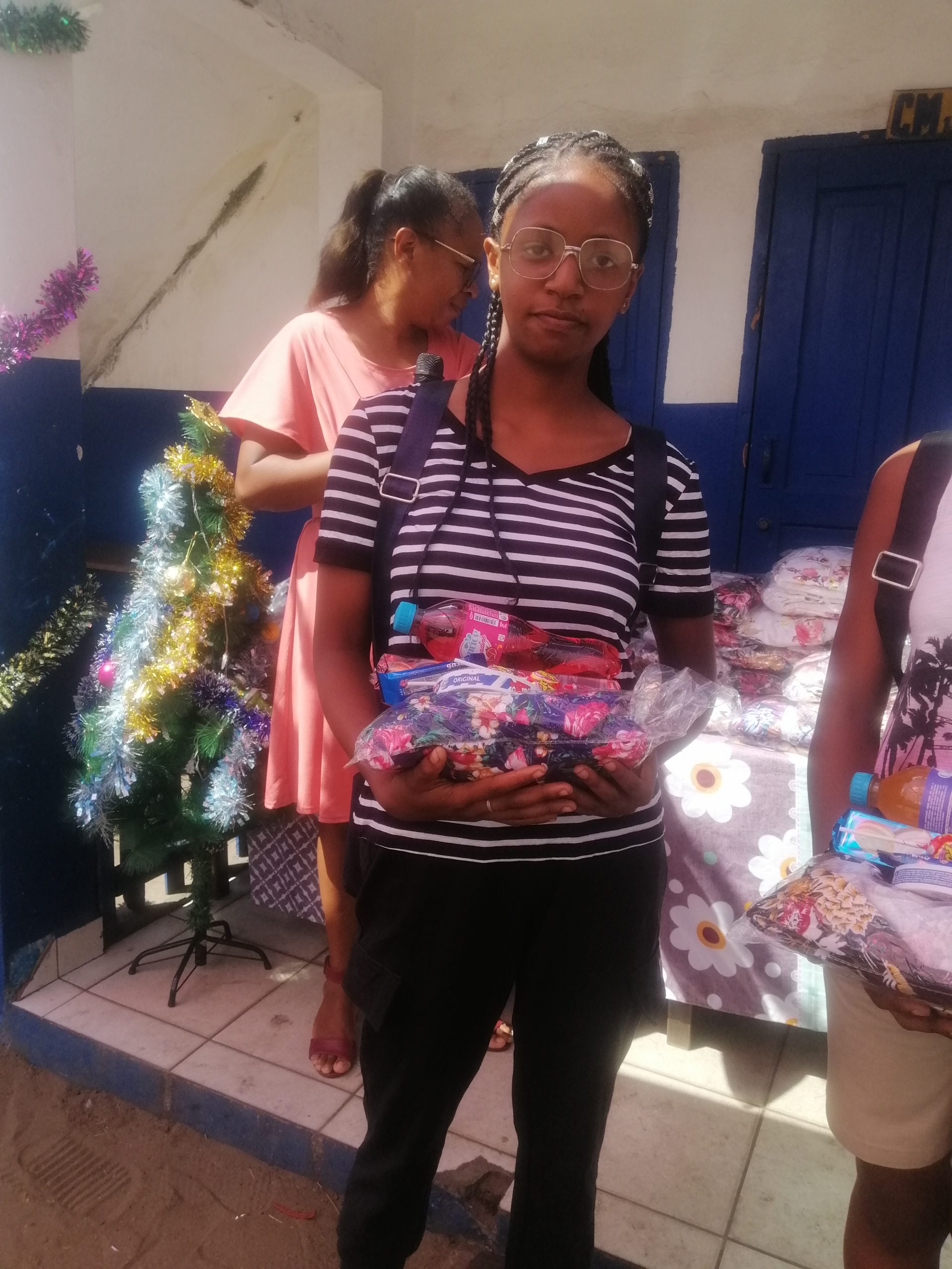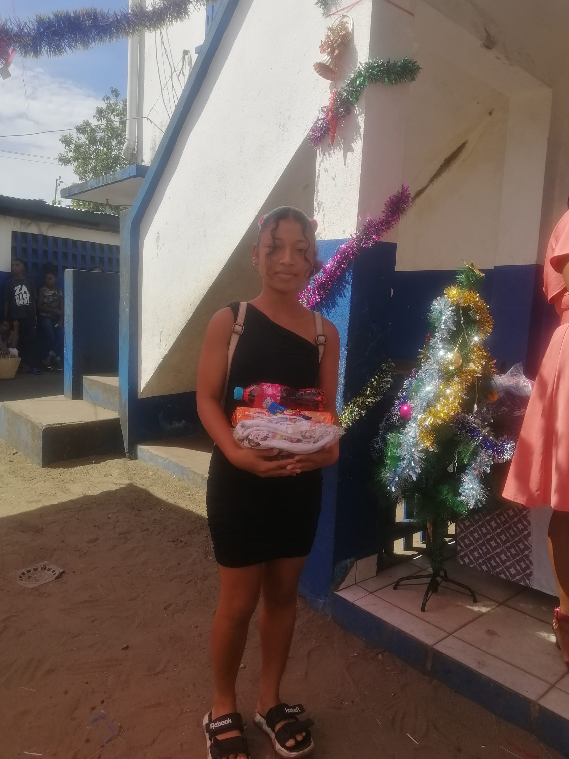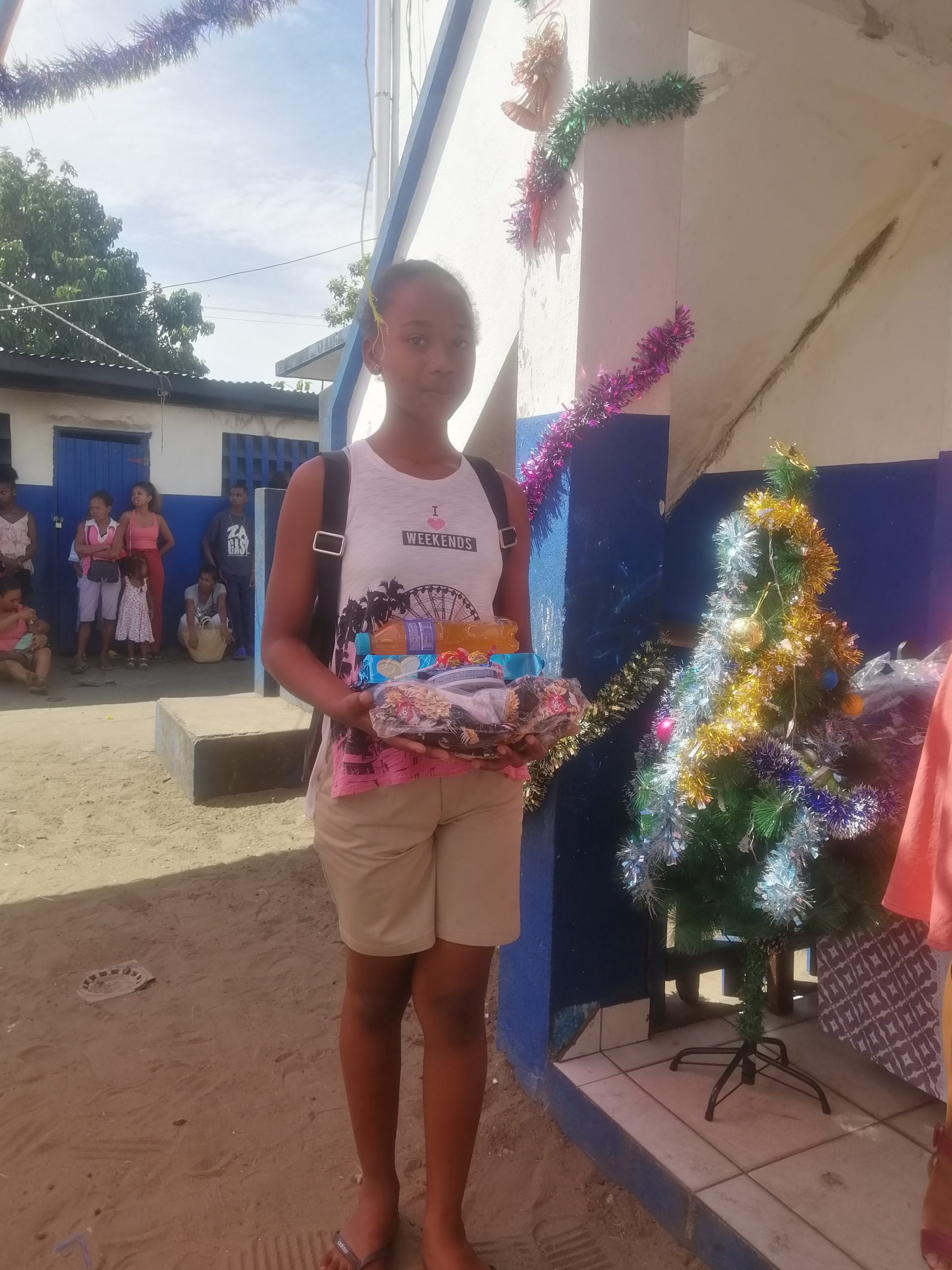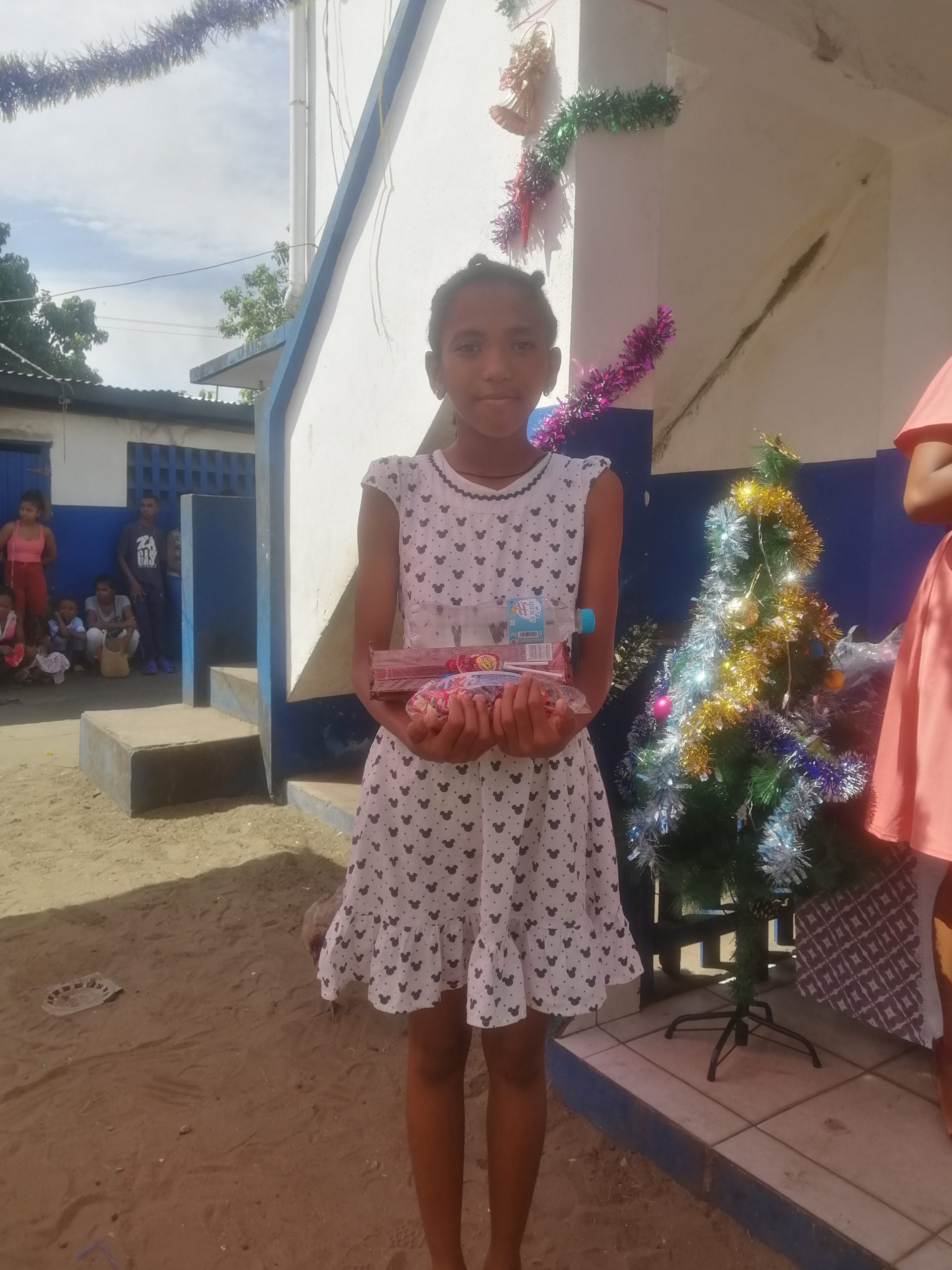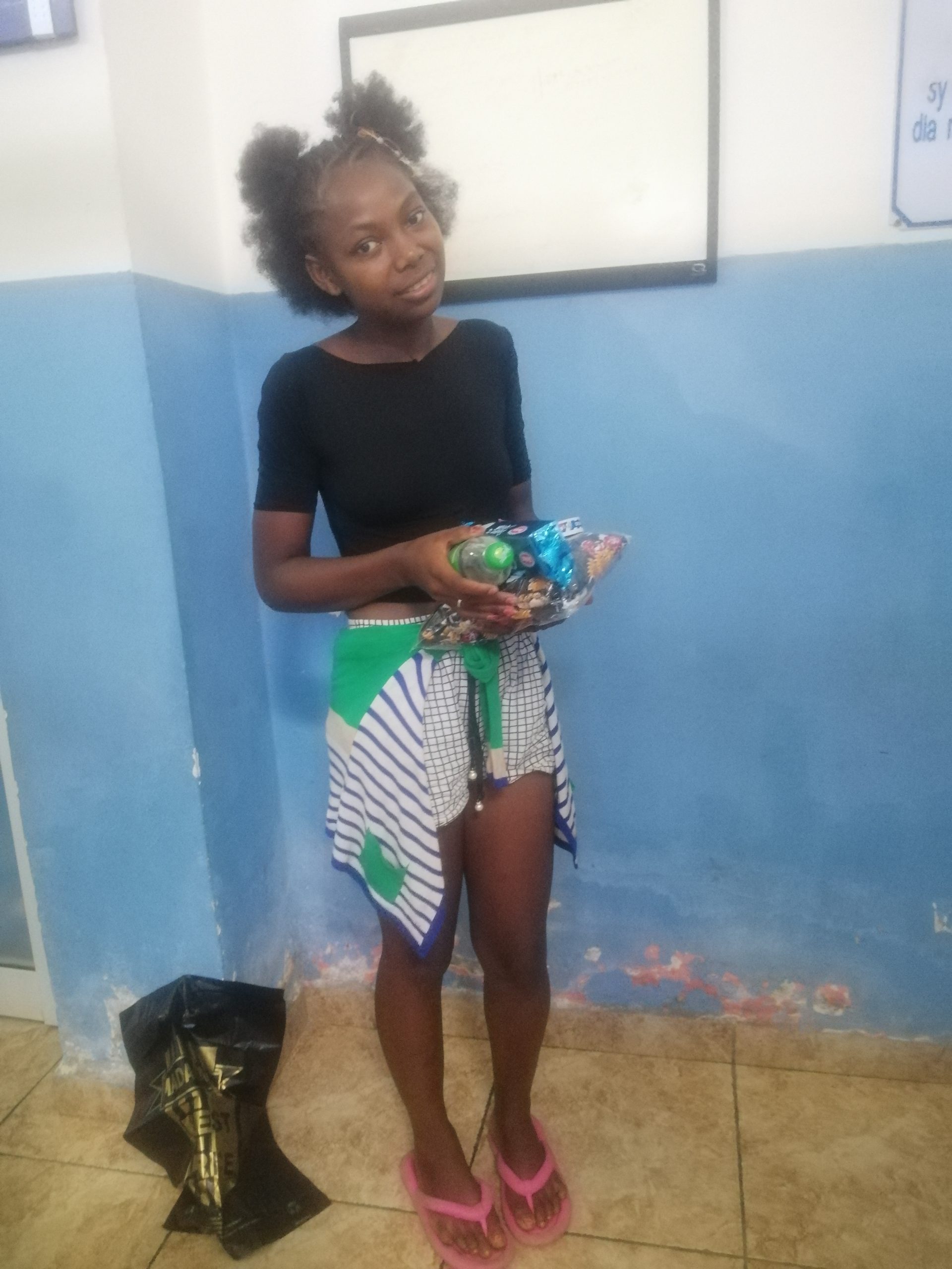 Pour les enfants en famille nous avons donné comme cadeaux : vêtement pour chacun et plus jouets pour les enfants en classe primaire. Pour les goûters : une boisson, une boîte de fromage, un biscuit GM, un chocolat et des bonbons sucettes.