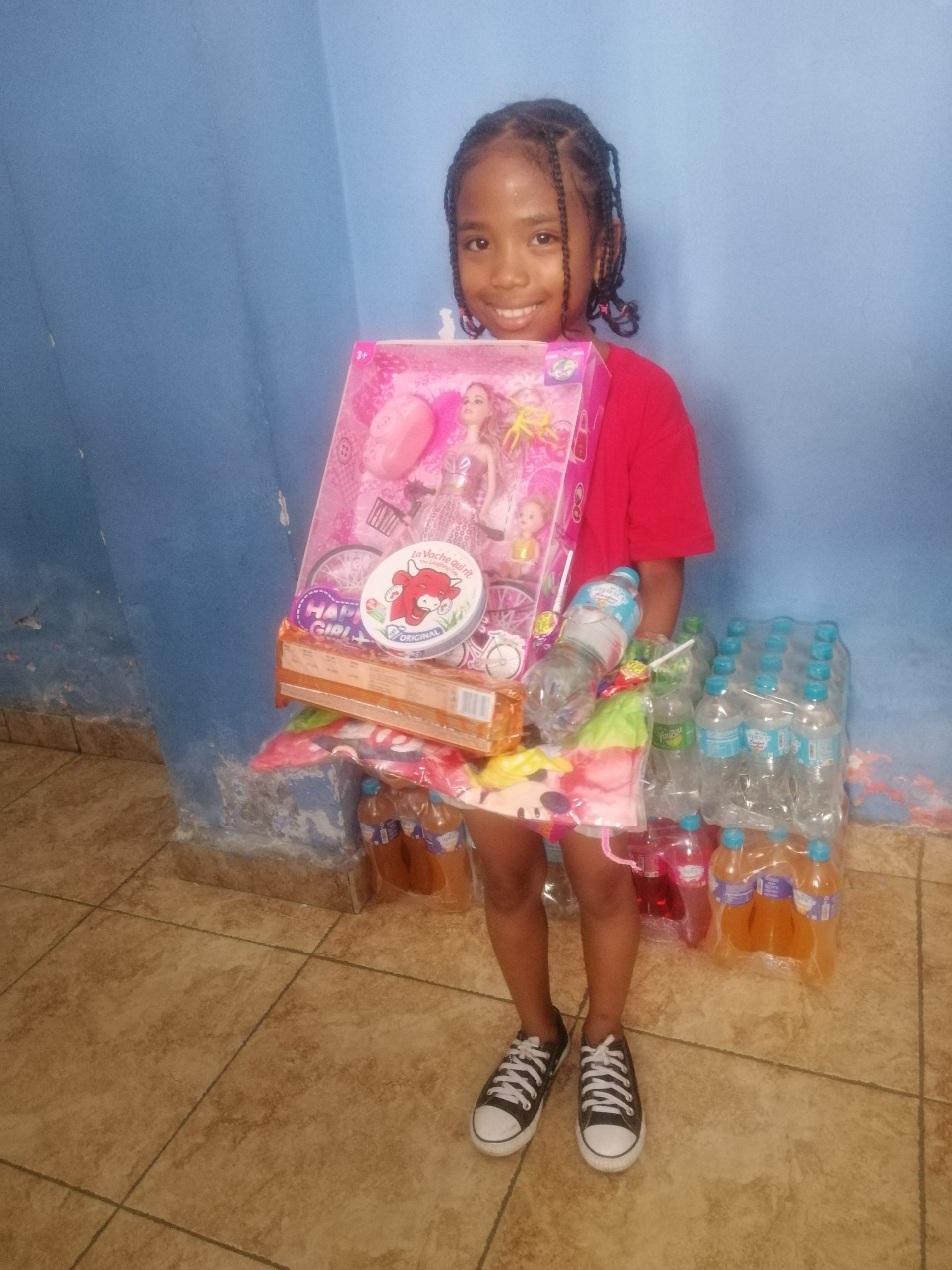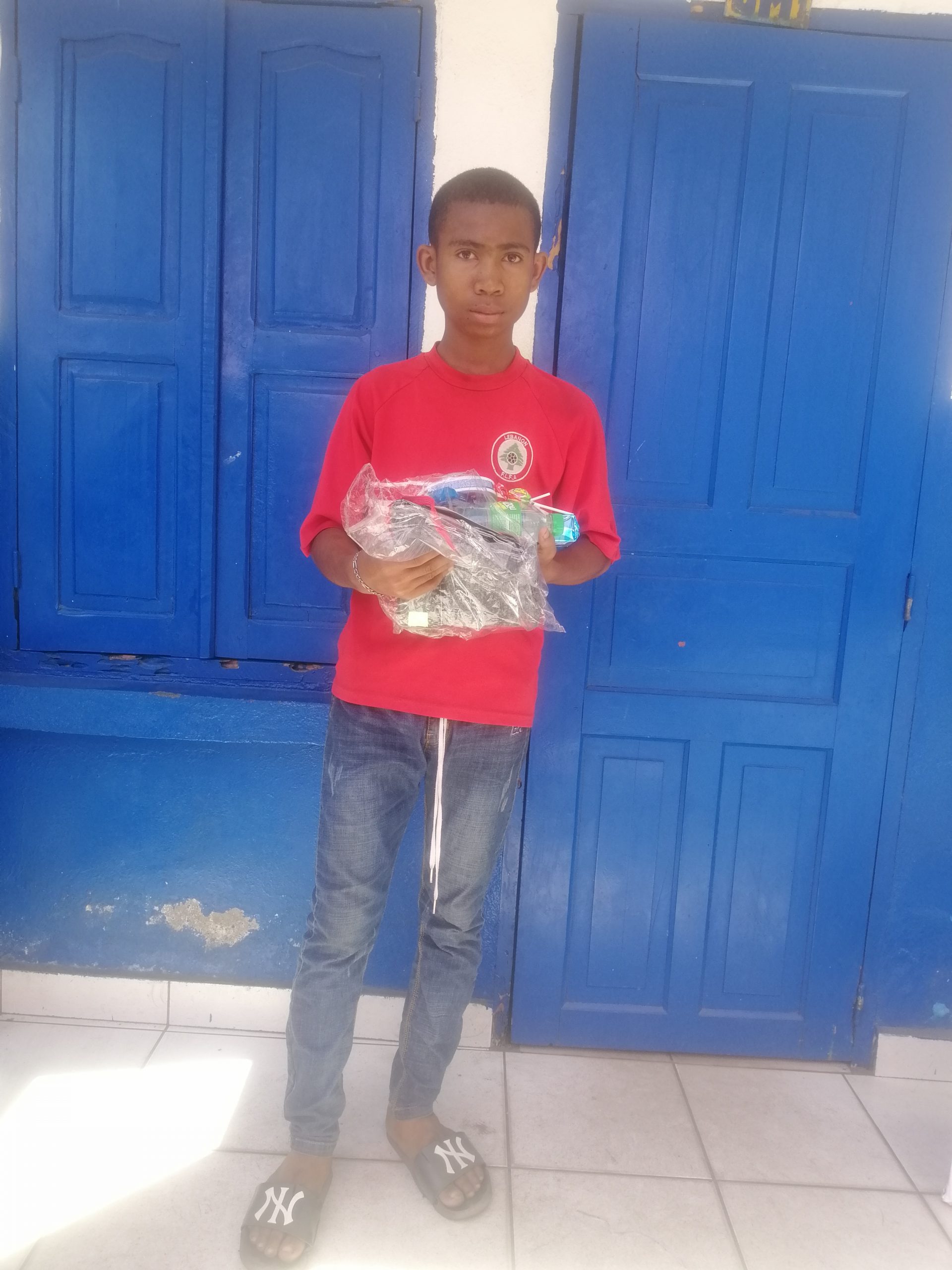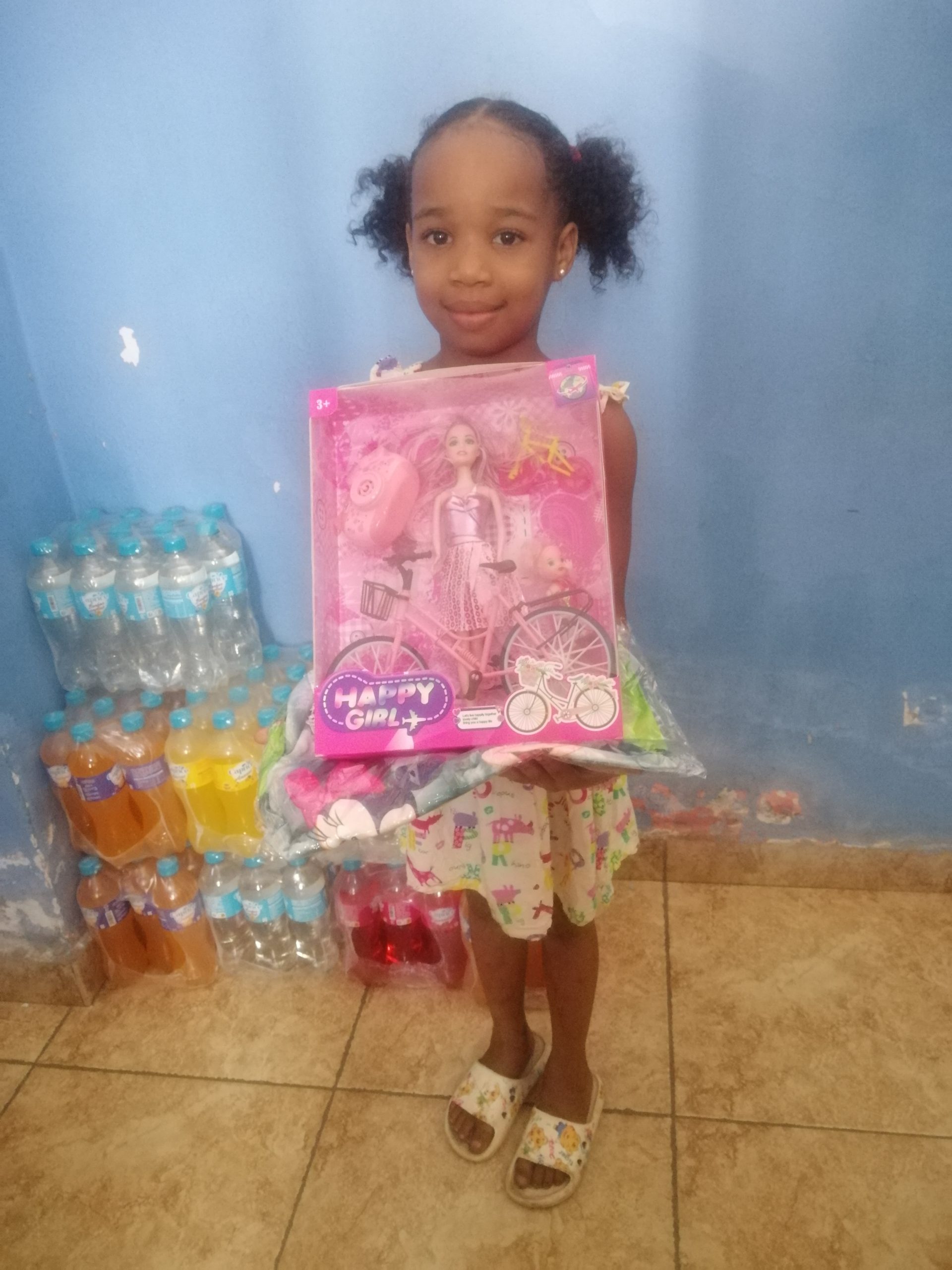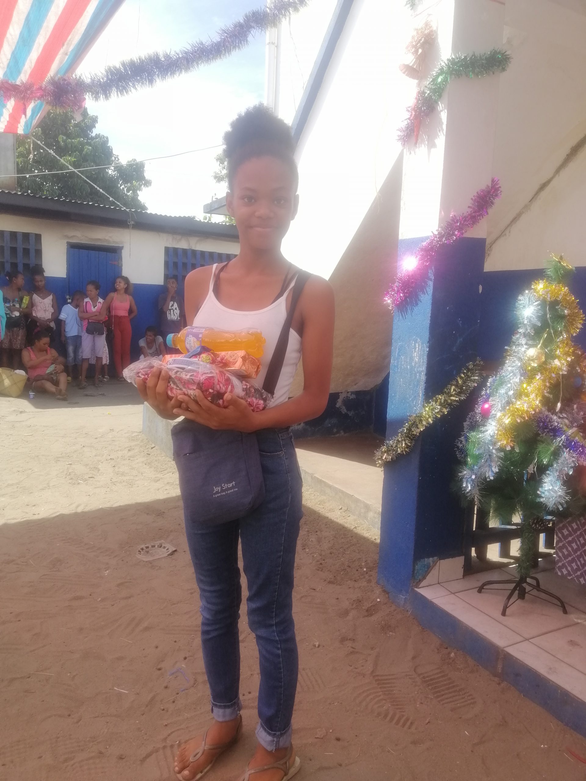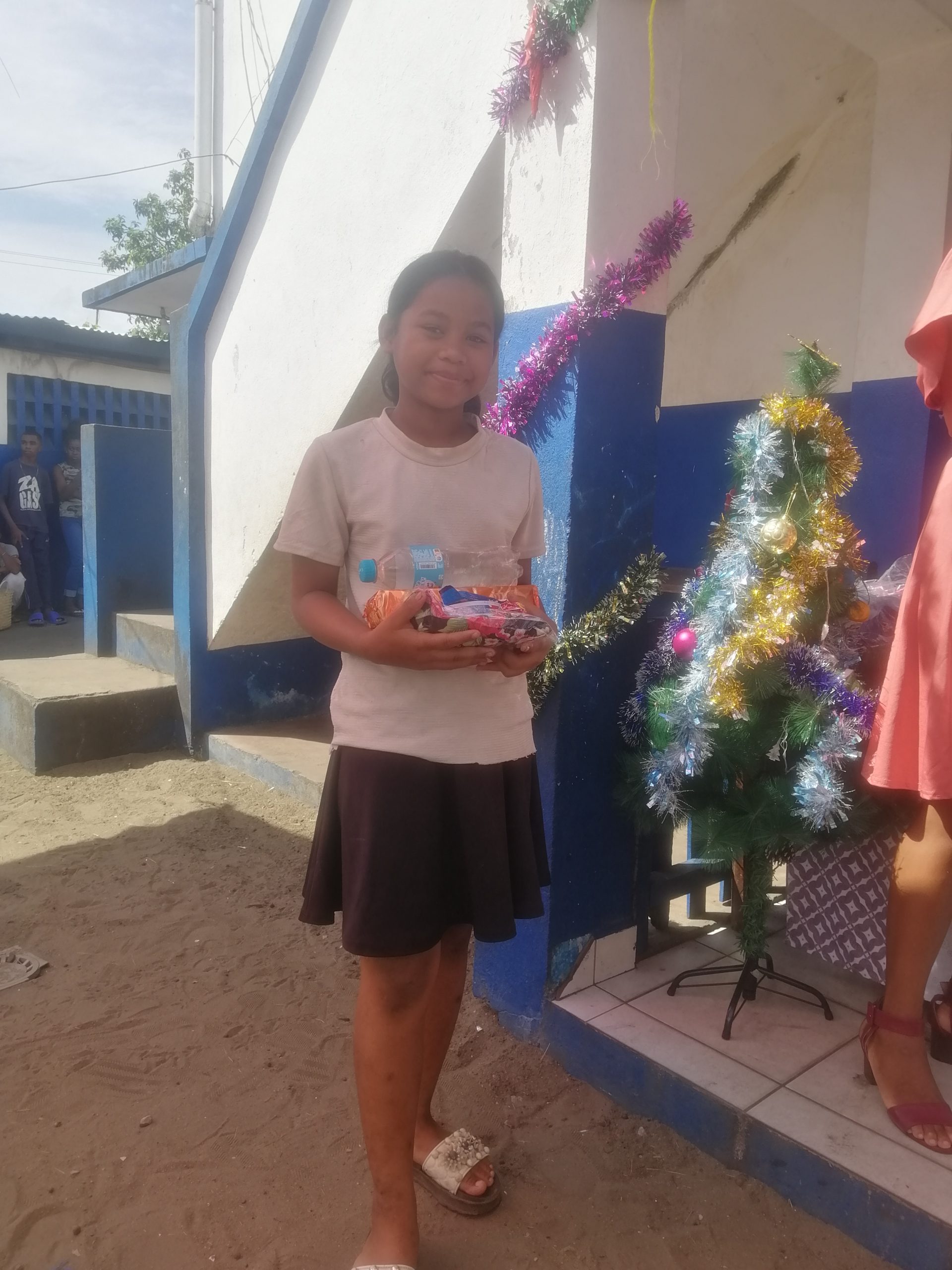Pour les enfants en famille nous avons donné comme cadeaux : vêtement pour chacun et plus jouets pour les enfants en classe primaire. Pour les goûters : une boisson, une boîte de fromage, un biscuit GM, un chocolat et des bonbons sucettes.