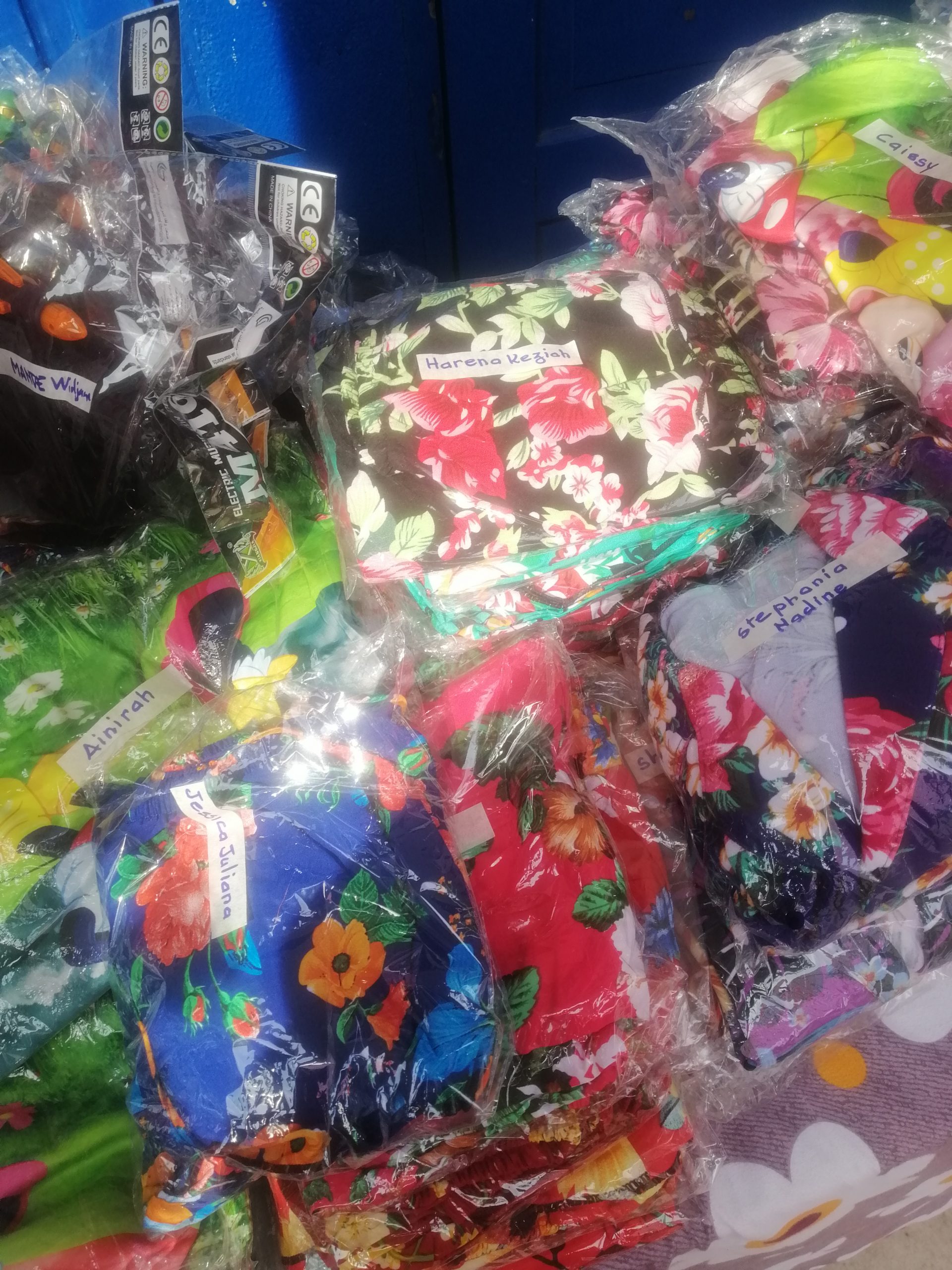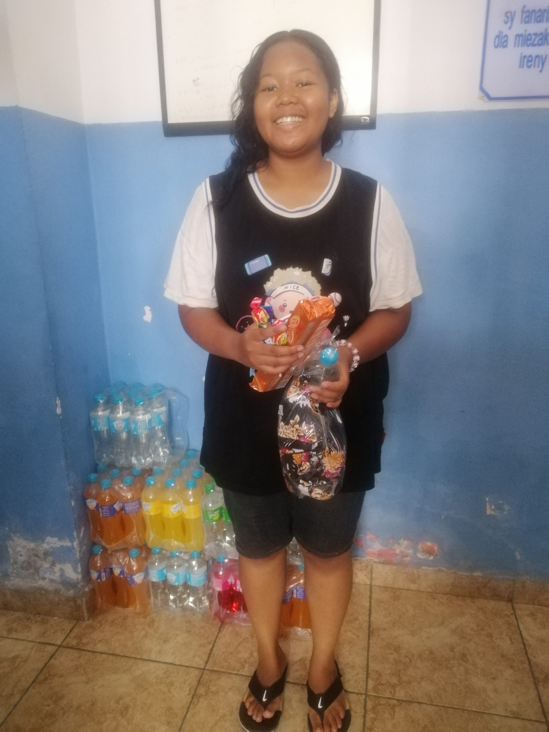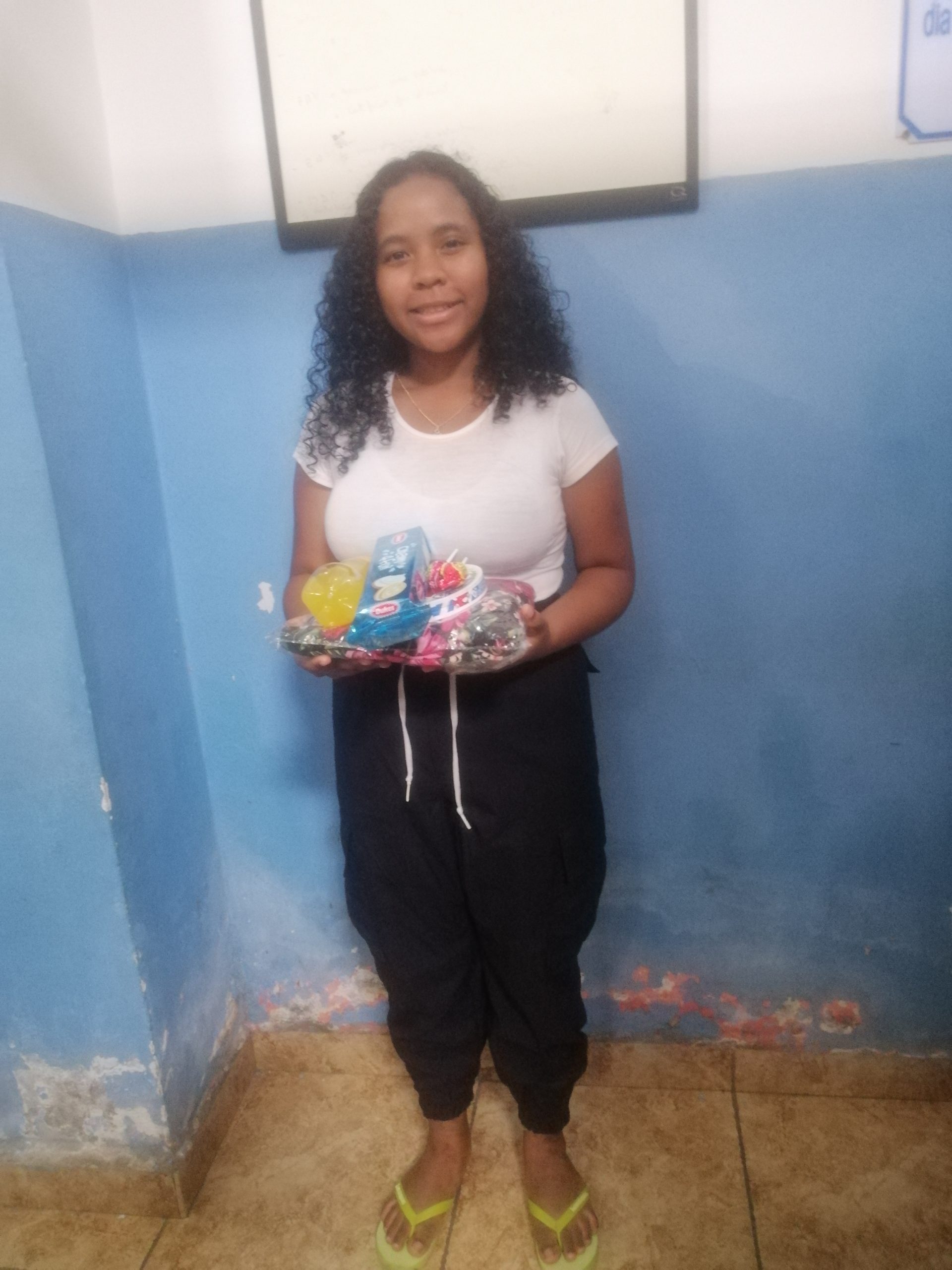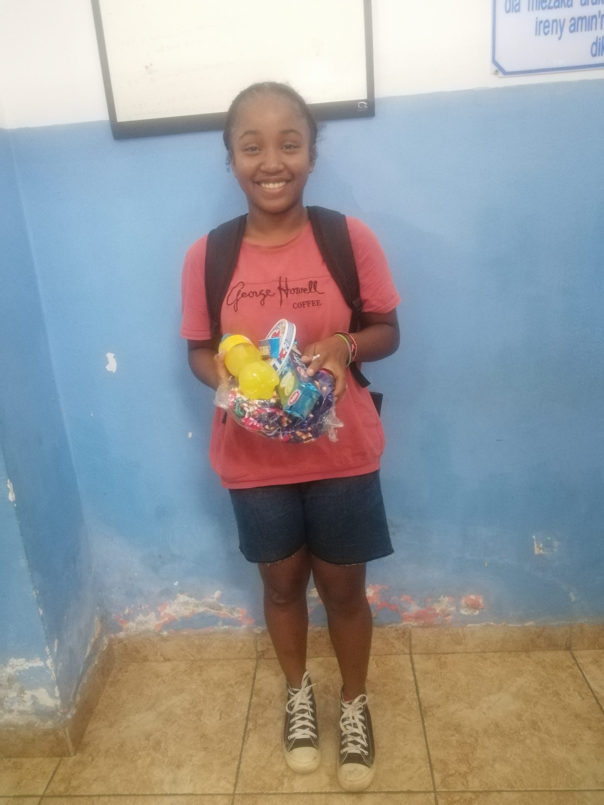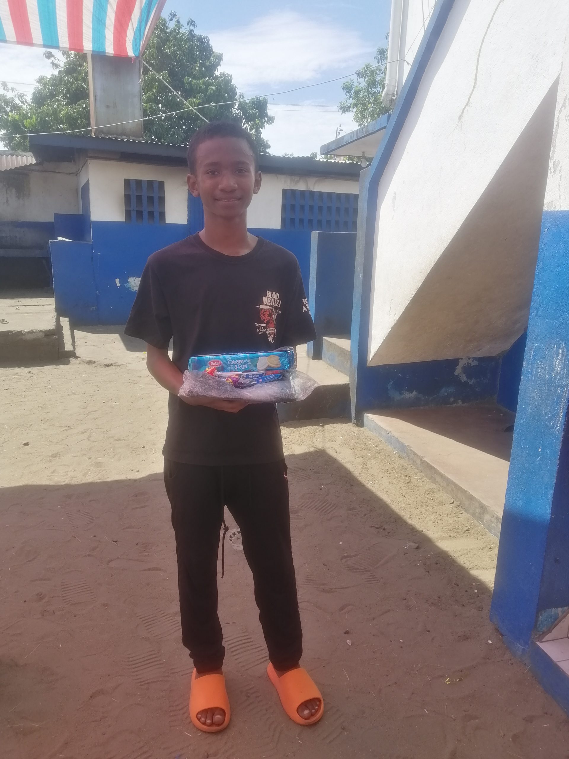 Pour les enfants en famille nous avons donné comme cadeaux : vêtement pour chacun et plus jouets pour les enfants en classe primaire. Pour les goûters : une boisson, une boîte de fromage, un biscuit GM, un chocolat et des bonbons sucettes.