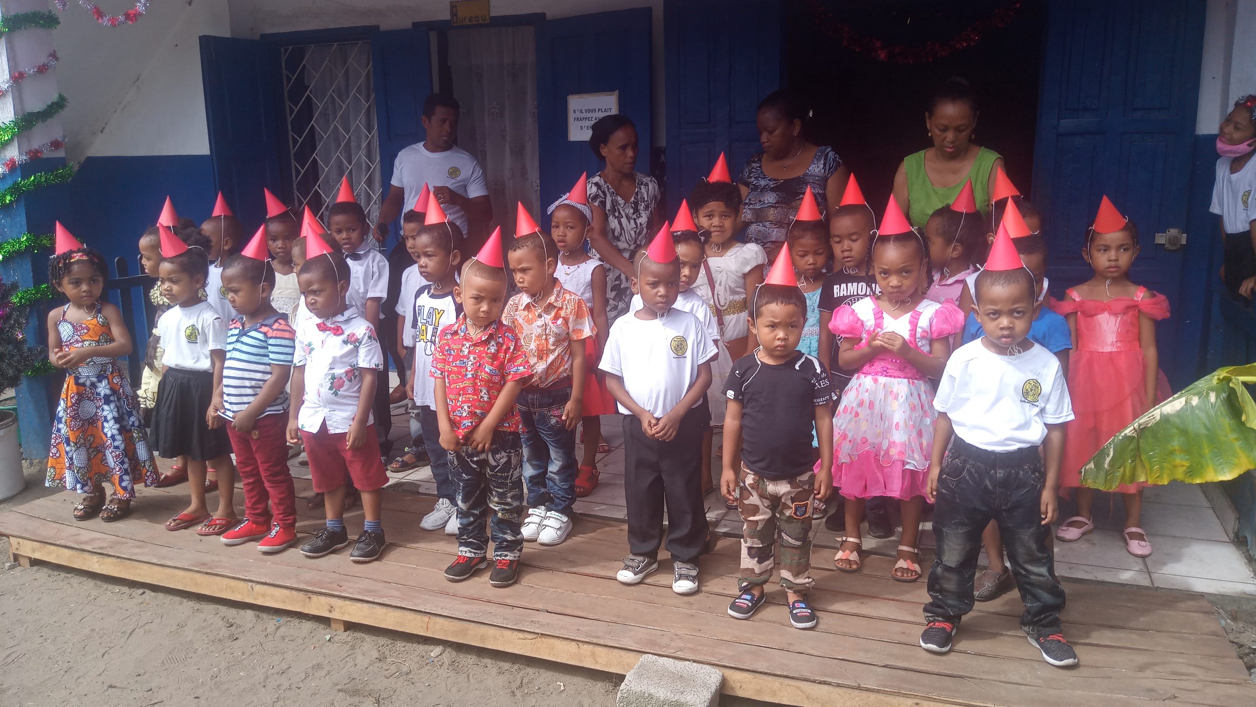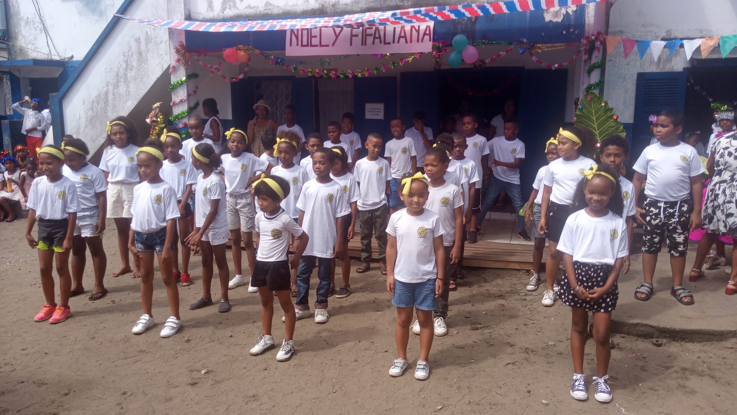 C’est la fête de fin d’année à l’école Antoine. Avant la distribution des bulletins, chaque classe a fait une prestation devant l’assistance (parents d’élèves, et personnel de l’école).