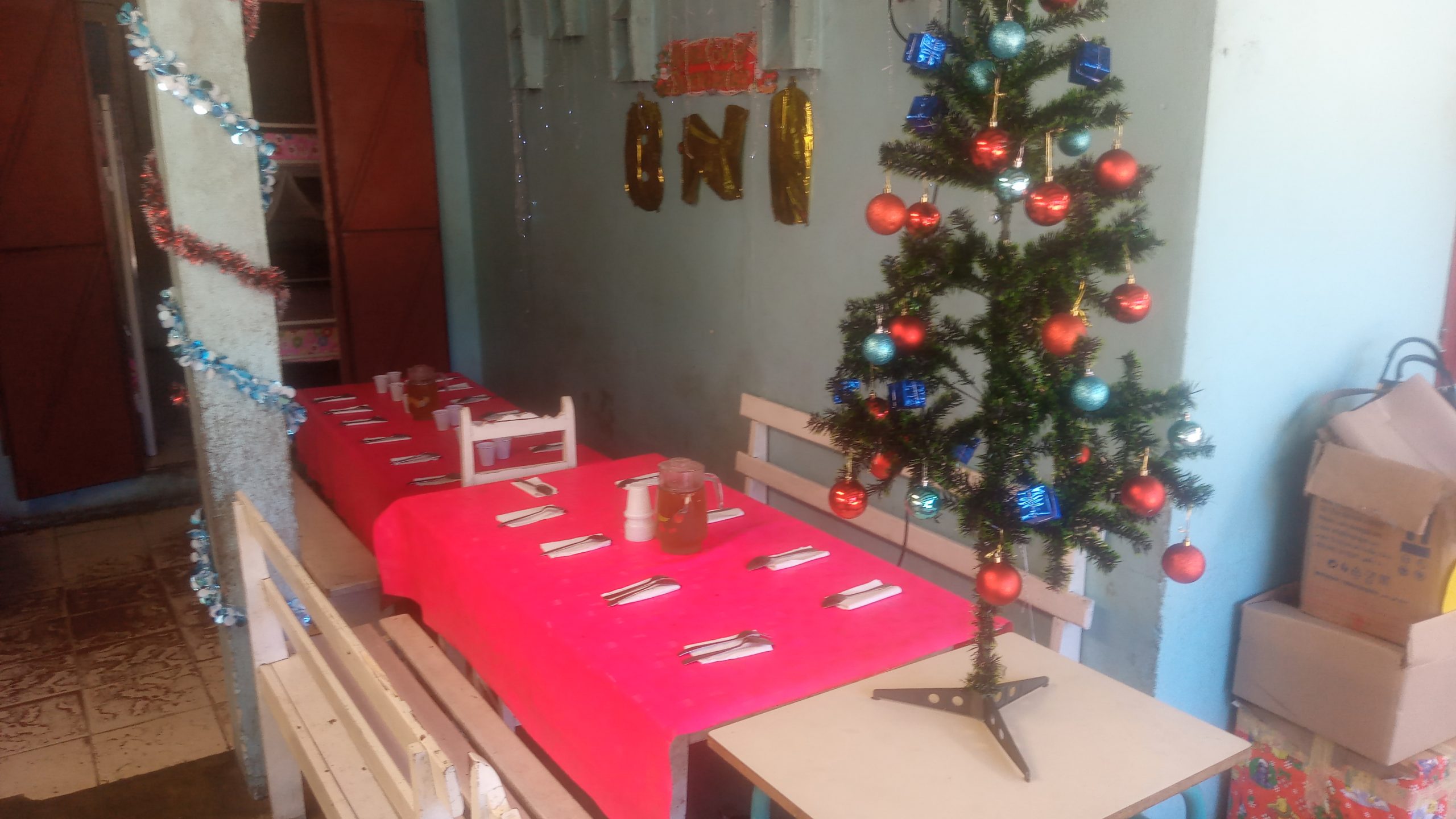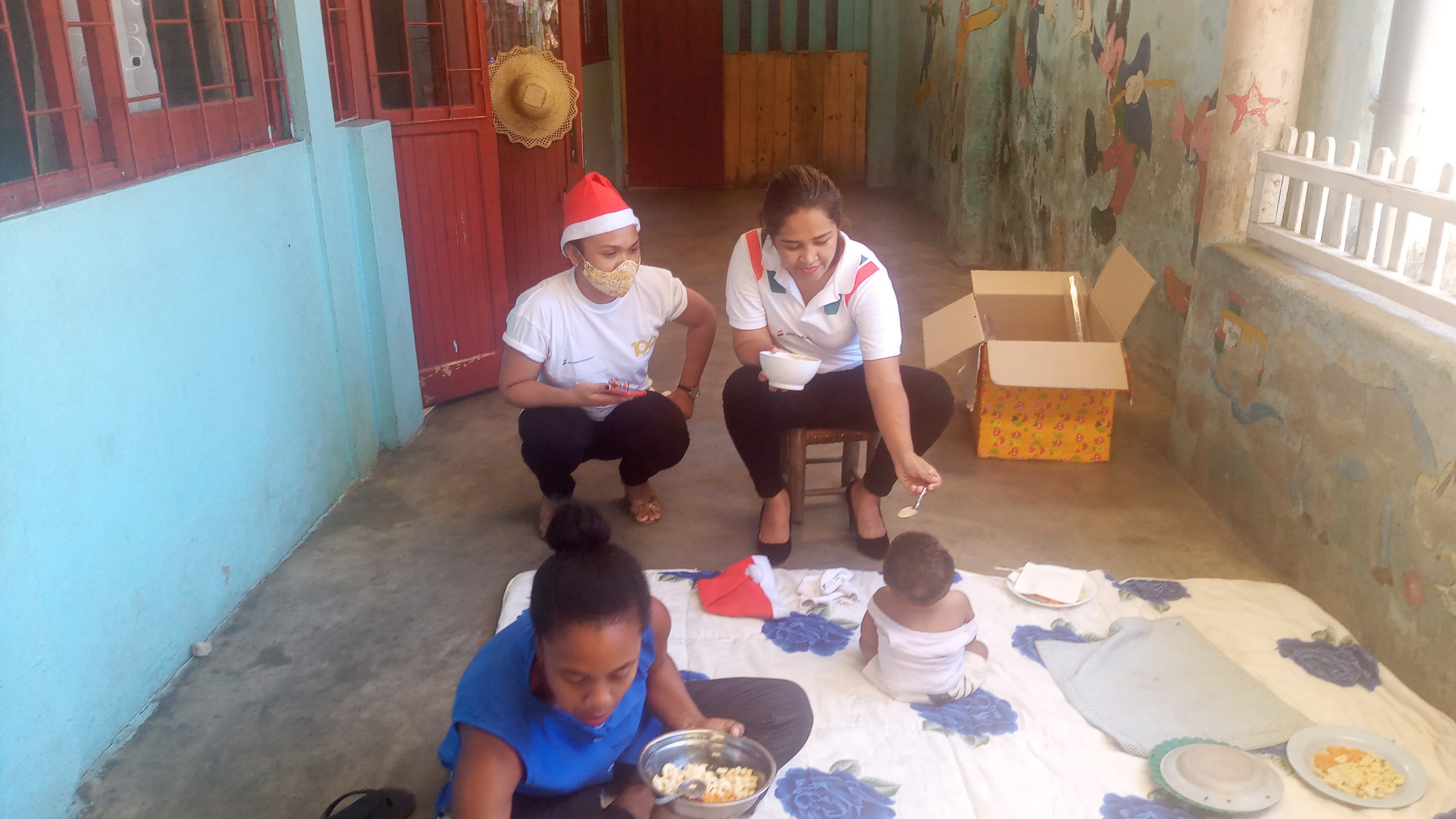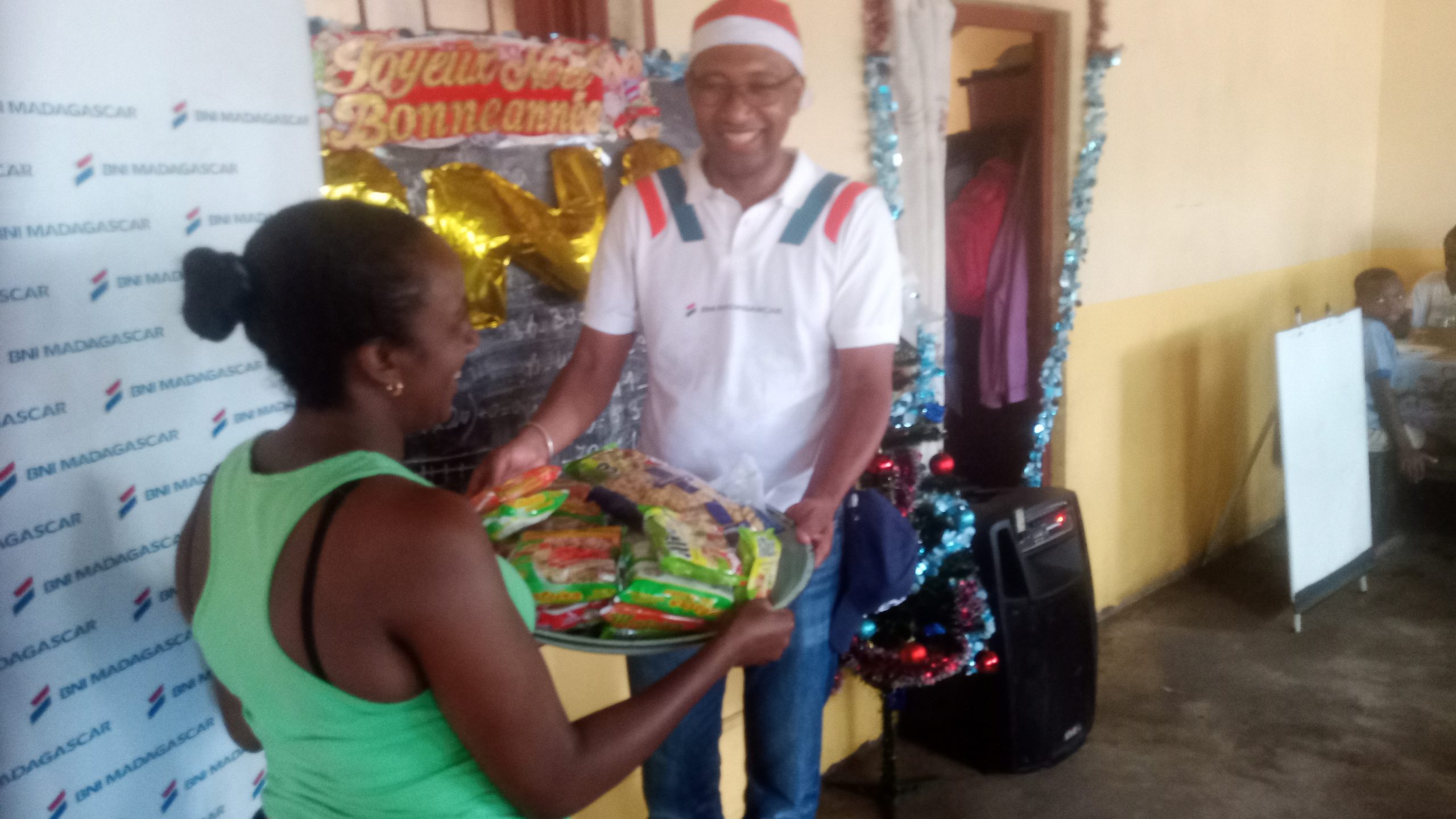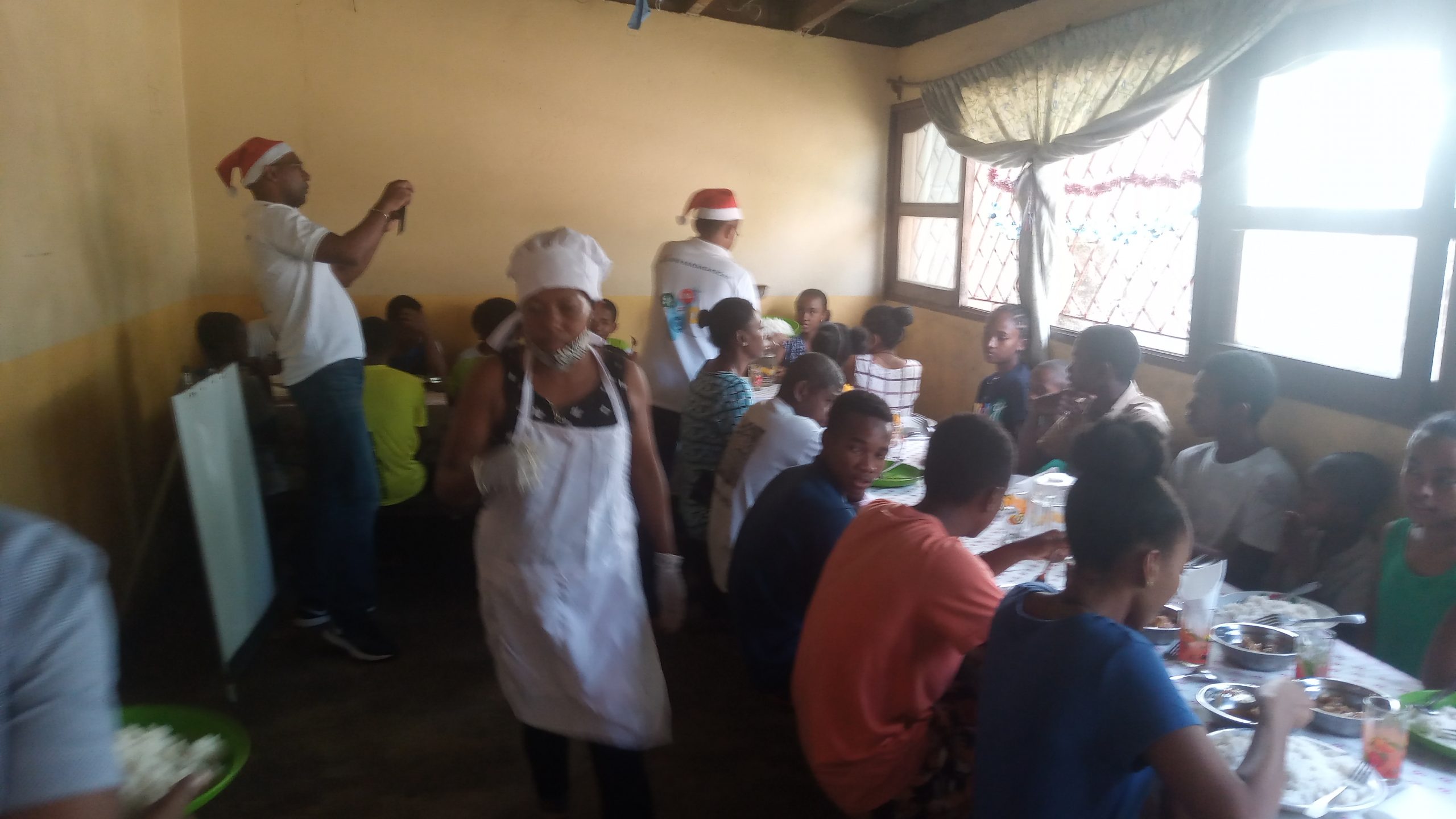 Comme ce qui s’était passé au Foyer Olom-baovao mercredi dernier, la BNI (Banque Nationale pour l’Industrie) Madagascar a offert le repas de midi aux élèves et au personnel de MA (Entrée, plat de résistance, dessert). Après le repas l’équipe de la banque adistribué des biscuits et des bonbons et des vêtements aux enfants: » C’EST NOEL ».