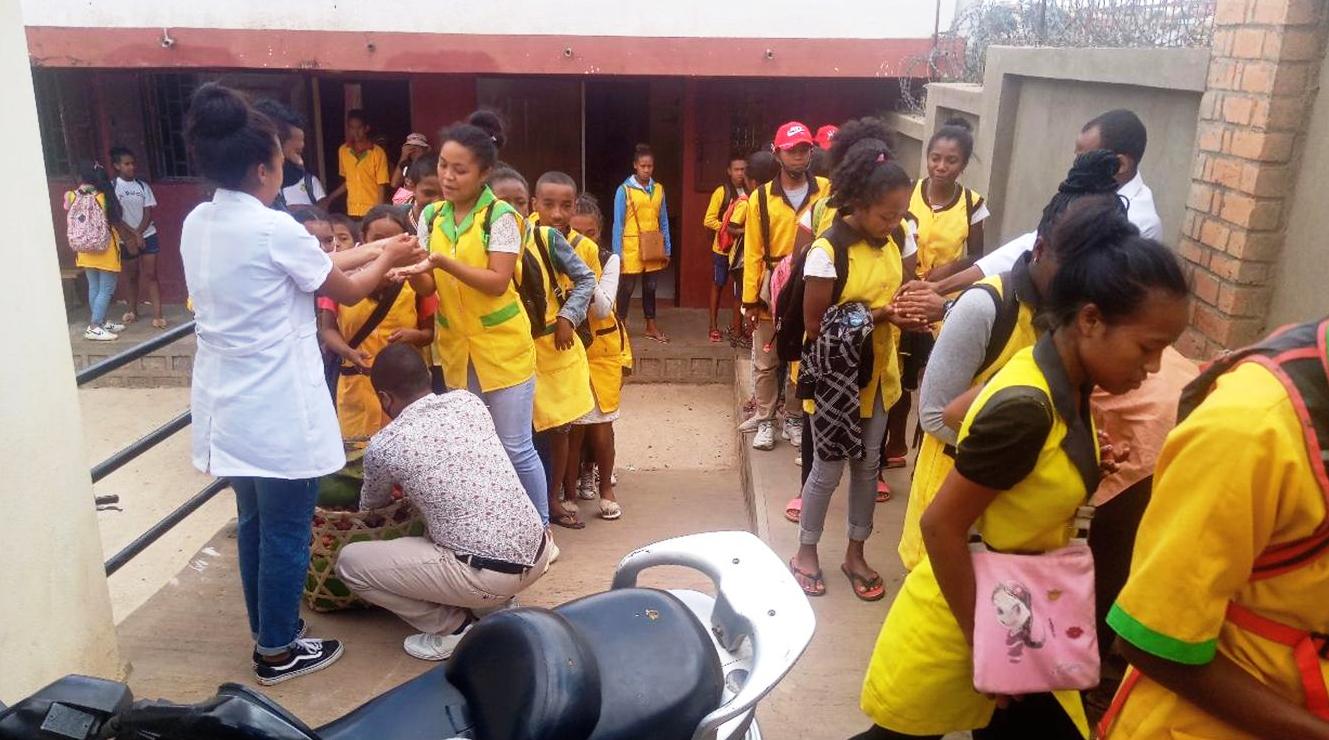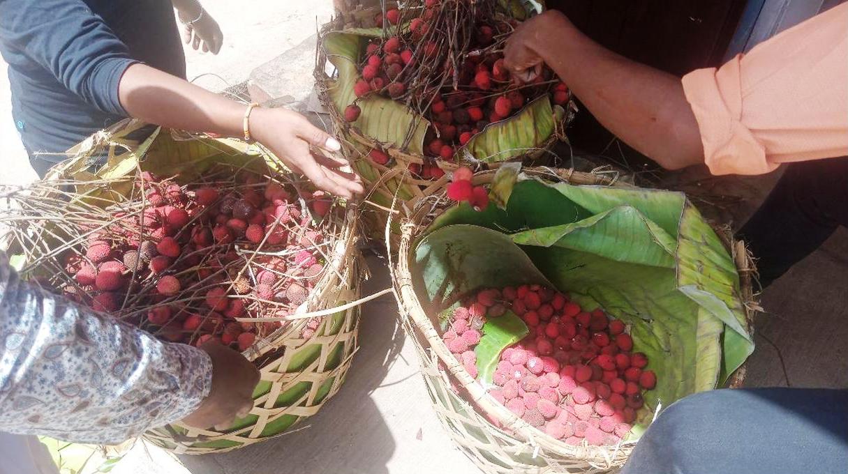 Claude PERROT, président du groupe TDE 13 nous avait fait envoyer de Tamatave « 5 Garaba » de letchis, nous les avons distribués aujourd’hui pour tous les élèves de La Ruche.
