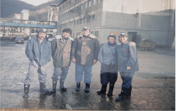 Une partie du groupe après la visite de la mine de Cuivre. A l’extrême droite Loréna ingénieur à la mine, 26 ans fille de Mr Scobercéa le comptable de l’Entreprise minière, Loréna parle un français parfait (son père lui avait fait prendre des cours particuliers en français ) elle accompagnera partout le groupe TDE .