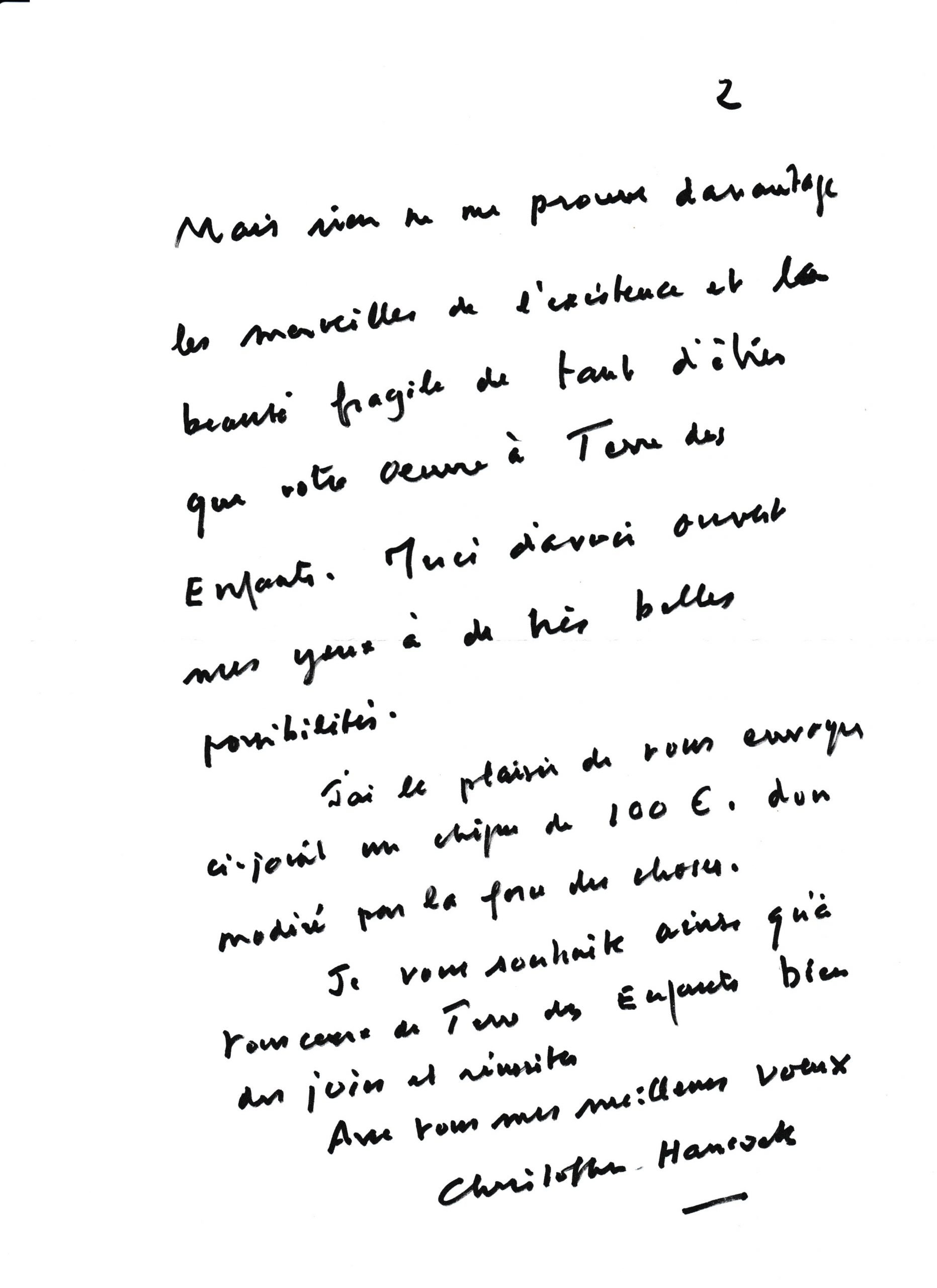 Chaque fin d’année, Mr CH fait un don à TERRE des ENFANTS accompagné d’un petit mot.