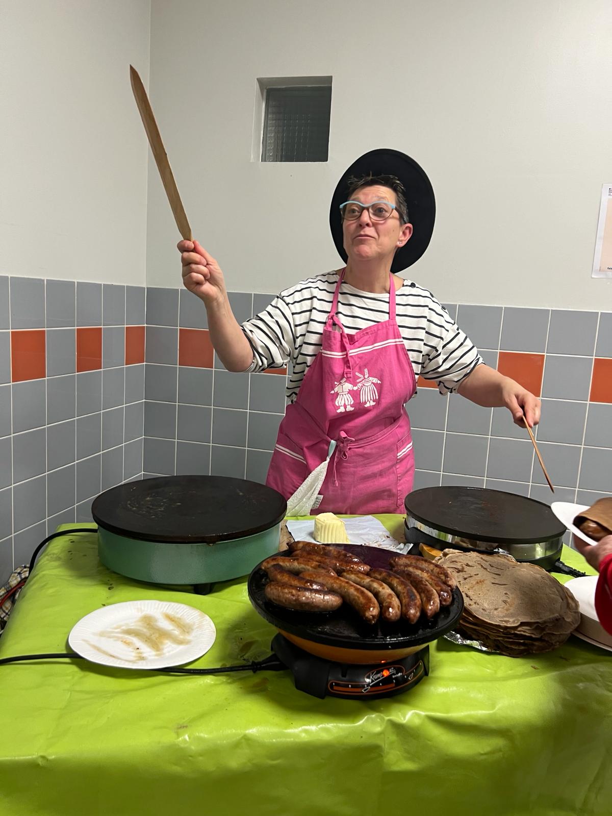 Côté bénévoles, dépassés par notre succès mais toujours dans la joie et la bonne humeur… Nous n’avons jamais arrêté de servir crêpes salées, sucrées et boissons.