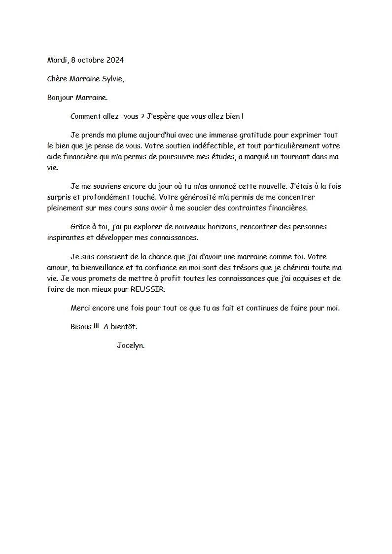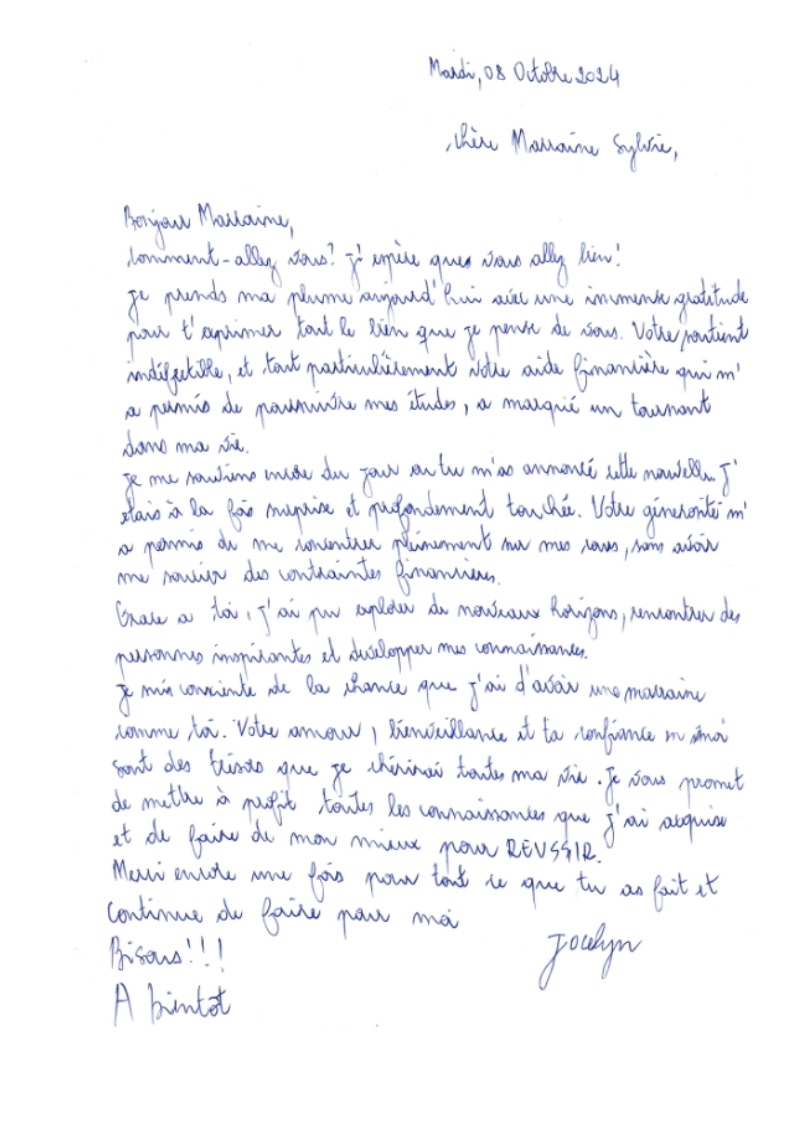 Voici la dernière lettre écrite à sa marraine qui nous fait chaud au cœur.